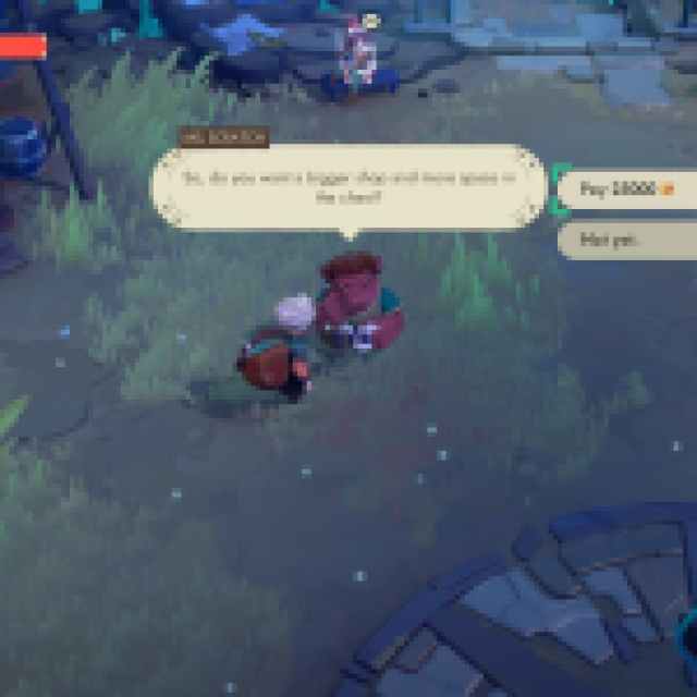 Pay her whenever you can; it doesn’t have to be right away, and the shop will be upgraded to level 2, granting two additional showcases for relics and extra space for furniture. This also increases K33P3R’s chest size.
