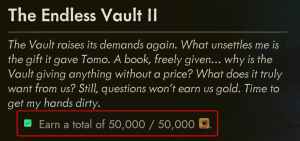 To add more showcases to your shop, first complete the second challenge of the Endless Vault, The Endless Vault II, by earning a total of 50,000 gold. You don’t need to have this Gold on you, but the overall earnings must reach 50K.