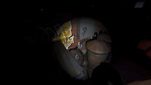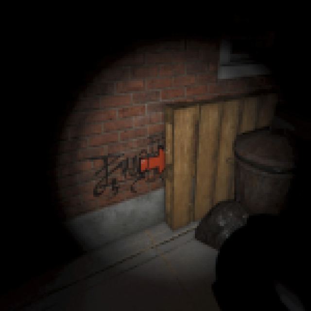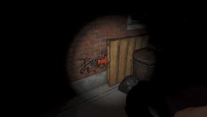 Approach the wall behind the safe and switch to your UV Light. Shine it at the wall, aiming for the small sticky note near the middle. Doing so reveals a secret code with three symbols: a down arrow, an up arrow, and a right arrow. You now need to find these symbols hidden around the diner to reveal the code.