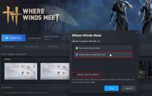 - Select “Where Winds Meet (DirectX12)” and check “Always use this option” and then hit the play button.