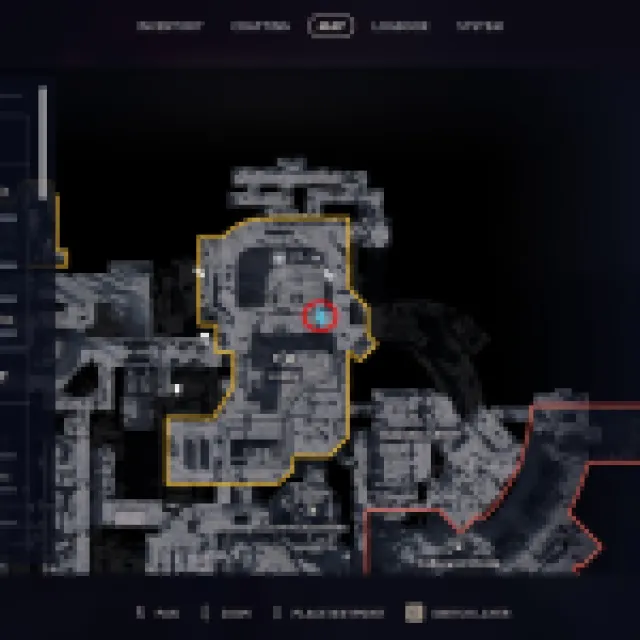 The Security Checkpoint room is much easier to find. Head to the Lobby, which is a wide-open area near the center of the map. Look for the security desk. Use the map above for reference. You’ll see a breachable door behind the security desk. Open it, go inside, and turn right.