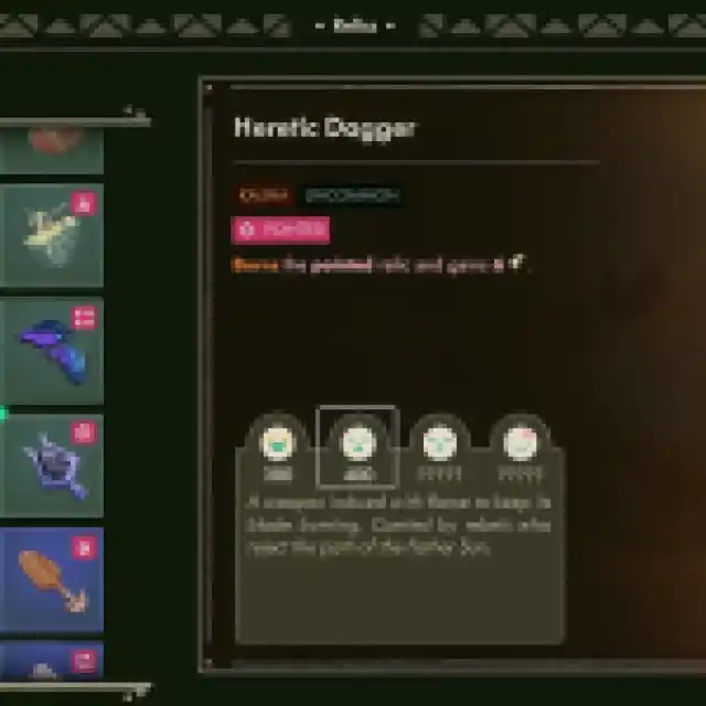 - Don’t worry about selling relics for cheap when you’re figuring out their price. This is a roguelite, and you’ll get the same ones over and over again.