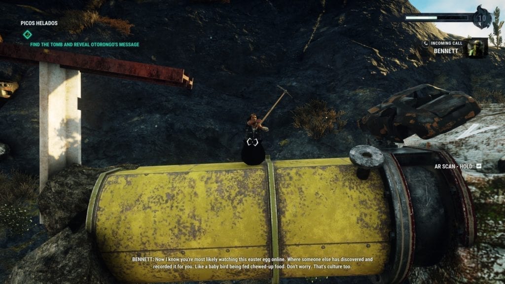 Yes, that’s right: There’s a Getting Over It with Bennett Foddy easter egg in Just Cause 4. But it’s not just a quick little reference to the game. Finding it gives you a small Getting Over It level in Just Cause‘s world, complete with Bennett Foddy soothingly talking over the top of it and reading out “inspirational” quotes from Just Cause characters.