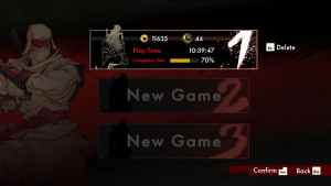The save file tracks your total play time of the particular run, the overall completion rate, the amount of gold you currently have, and Oboro Relics found so far. You can’t rename these slots, and each is assigned a number.