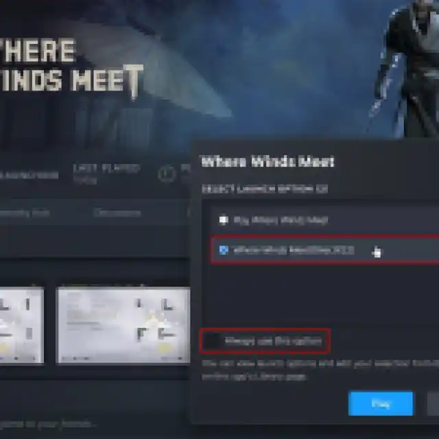- Select “Where Winds Meet (DirectX12)” and check “Always use this option” and then hit the play button.